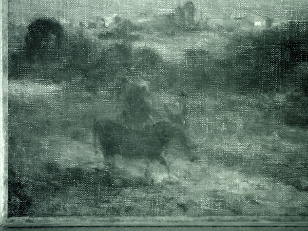 風景画の一部赤外線写真。馬に乗る人物見える(クリックで拡大)