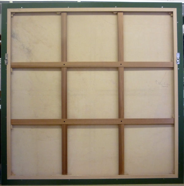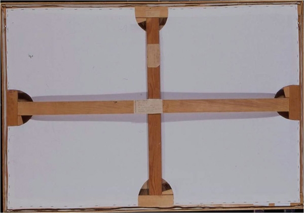 - ※木枠に取り付けられる裏板も、絵画の裏に何かが当たるなどした場合のアクシデントによる損傷を防ぐという他に、キャンバス布裏側の空気を動きにくくして布の揺れを抑えるという働きもあります。