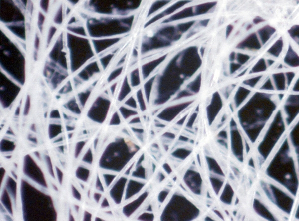 顕微鏡で見た和紙の繊維(クリックで拡大)