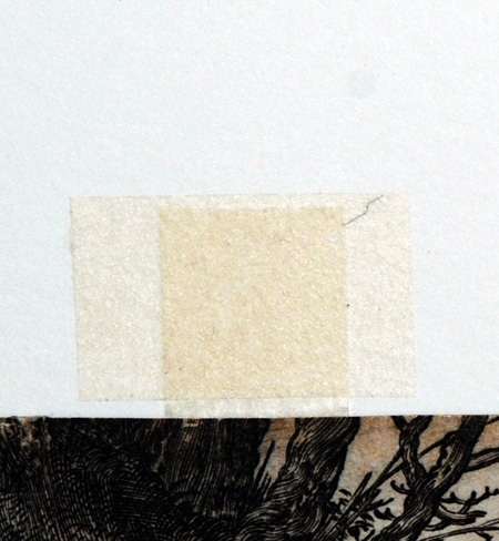 マットの中に保存されることにより、物理的な衝撃や取り扱いの不注意による事故から作品を守ることができます。また、中性紙の働きによって紙の脆弱化、黄変が防止されます。但し、まれに、中性紙に含まれるアルカリに弱い色材やインクが作品に使用されていることがあるので、注意しなければなりません。
